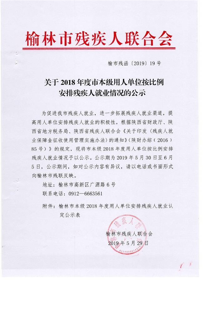 关于2018年度市本级用人单位按比例安排残疾人就业情况的公示 发布时间:2019-05-30 16:36:00 来源:宣文科 阅读:13534 【 大 中 小 】 扫一扫在手机打开当前页 上一篇: 市残联在靖边县开展第三代残疾人证 抽检工作 下一篇: 残联2017年度部门预算公开情况