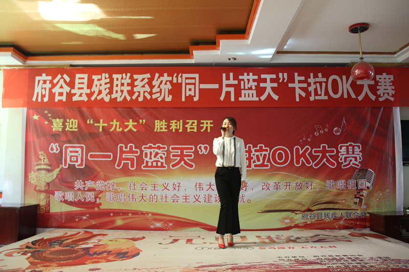 为了迎接党的“十九大”胜利召开,在全社会唱响共产党好、社会主义好、伟大祖国好、改革开放好,歌唱祖国、歌唱人民、歌唱新生活所取得的伟大成就,为府谷县全面建成小康社会凝心聚力。府谷县残联系统于9月28日举办了“同一片蓝天”卡拉OK大赛,共有42名残疾人及残疾人工作者参加了比赛。
