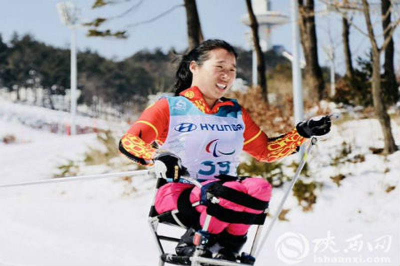 人物链接:金亚维: 1991年出生,咸阳市礼泉县人。一岁3个月时,一场高烧使她无法正常行走。2009年,加入陕西省轮椅竞速运动队。入队后, 金亚维凭借顽强毅力和刻苦训练,2013年4月代表陕西队参加在福州举行的全国残疾人田径锦标赛,获得女子竞速轮椅T53级100米和200米两个冠军。同年9月代表国家队出征荷兰世界轮椅和截肢者运动会,勇夺100米、200米、400米女子轮椅竞速项目等3块金牌。在2014年10月仁川亚洲残疾人运动会上获女子田径T54级轮椅竞速200米、400米、800米三个项目的银牌。2015年10月从田径项目转项从事冬季运动项目,分别获得2016年平昌残疾人越野滑雪亚洲杯第五名、2017年加拿大北欧滑雪世界杯女子坐式越野滑雪长距离(12公里)比赛铜牌、 2018年德国国际残奥委员会(IPC)世界越野滑雪锦标赛女子中距离和长距离两个项目的第六名。