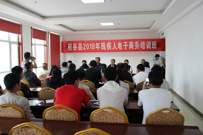 5月21日,府谷县残联联合商贸办万达大厦八楼电商培训室举行2018年残疾人电子商务培训开班仪式,共21名残疾人参加了培训。