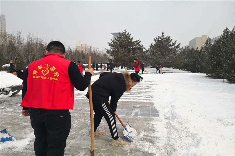 榆林市残联全体干部职工参与扫雪除冰义务劳动 发布时间:2020-01-16 16:21:00 来源:宣文科 阅读:9135 【 大 中 小 】 昨夜又雪,整个榆林城区白茫茫一片,由于气温骤降,道路全部结冰,给群众出行和道路安全造成严重影响,为确保道路畅通,保障群众出行安全,榆林市委办组织院内所有部门去扫雪,市残联积极响应,干部职工纷纷走上街头进行扫雪除冰义务劳动,同志们身穿志愿者服装不怕寒冷,干劲十足,有的铲、有的推、有的扫,齐心协力将厚厚的积雪和冰块铲到路边、卯着劲扫的热情高涨! 经过几个小时的奋战,各责任单位将包干路段的积雪基本清理干净,确保了过往车辆和行人的安全。 扫一扫在手机打开当前页 上一篇: 贺举祥扶贫先进事迹 下一篇: 市残疾人服务中心工会“情系职工、温暖相伴”趣味活动