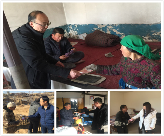 迎新春、入基层、送温暖 发布时间:2018-02-02 16:58:00 来源:办公室 阅读:5083 【 大 中 小 】 为确保困难残疾人温暖过冬,度过一个温暖祥和的春节。近日,在榆阳区残联理事长郑秀和的带领下,榆阳区残联深入贫困残疾人家中,走访慰问了全区62户困难残疾人,送去了党和政府的温暖和关爱。走访中,区残联领导详细询问了困难残疾人家庭情况、身体状况、积极帮助他们解决困难,并为他们送上慰问金。 扫一扫在手机打开当前页 上一篇: 横山区举办“爱耳日”宣传活动 下一篇: 府谷县开展2018春节慰问贫困残疾人活动