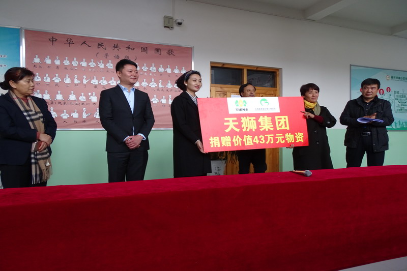 在捐赠仪式上,天狮集团一行人不仅给孩子们带来了价值四十多万元的营养保健品和一些图书、文具用品,还为他们送上了祝福和鼓励。活动现场雷军主席作了重要讲话,他首先对各位爱心人士的的善举表示衷心的感谢,并对孩子们也提出了殷切的希望,希望残疾孩子将来也能回报社会。