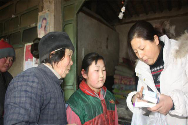从那以后,冯彩强就成了郝俊兰家的常客,她把这家人当成了亲人,隔三岔五带些生活用品,经常来看望老人家,这一帮就是9年。
