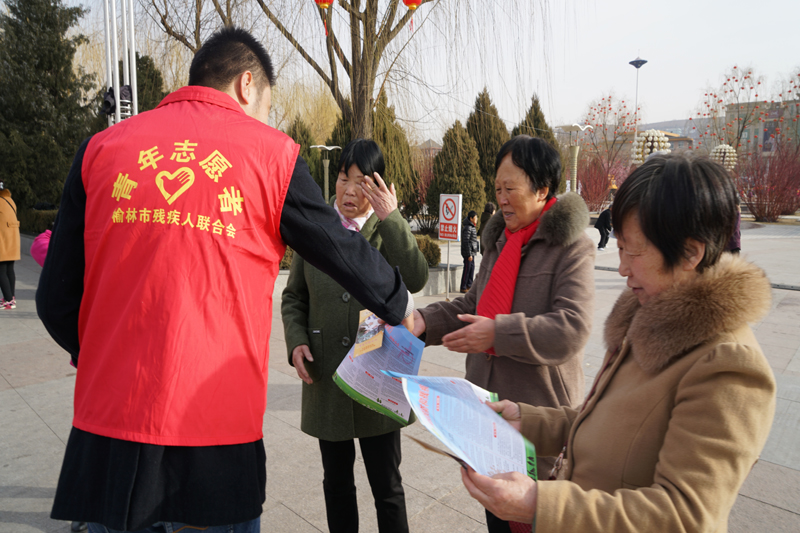 榆林市残联慈善志愿服务队积极在现场开展义诊、残疾预防知识宣传等志愿服务活动,提醒和教育市民预防和减少残疾的发生,唤起社会对残疾人的关注。