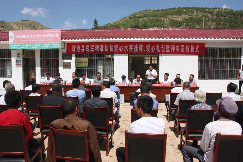 2017年7月7日,在全县上下紧密开展精准脱贫工作之际,靖边县残联在杨米涧镇郝渠则村隆重举行精准扶贫爱心水窑挂牌、爱心礼包和种羊发放仪式,市县有关领导参加。