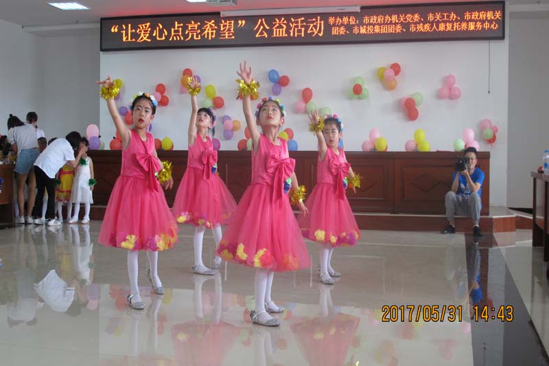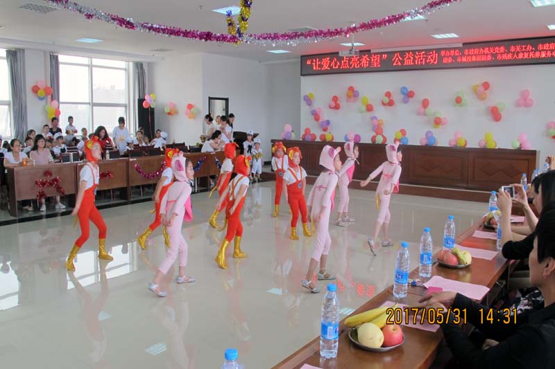 2017年“六一”国际儿童节,榆林市残疾人康复服务中心的小朋友迎来了一场别开生面的欢庆活动——来自榆林市政府办机关党委、市政府机关团委、市关工办、市城投集团团委的志愿者们,和他们一起过节。志愿者在为听障儿童和孤独症小朋友带来关怀与温暖的同时,也带来了他们的礼物——长期帮扶残疾儿童的计划和97套漂亮的衣服,旨在弘扬扶贫助弱精神,发挥社会正能量,让残疾小朋友和健全人一样融入社会,享受美好。康复服务中心的小朋友也为这些充满爱心的大朋友献上了一场精彩的文艺演出。