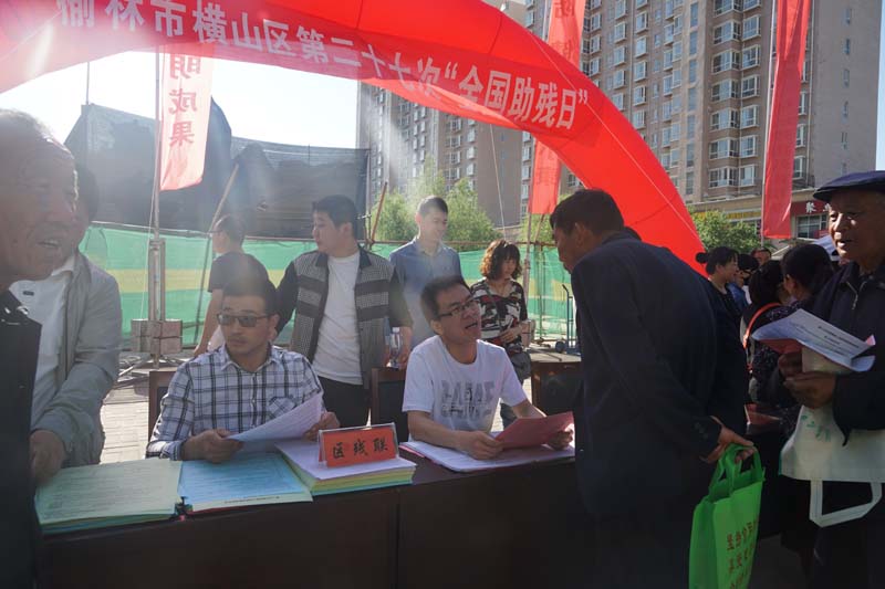 横山区残联邀请区药监局、安监局、司法局、盐务局、区医院、地病办、妇幼保健站、疾控中心等单位相关负责人一同在区政府广场开展了宣传教育活动。活动期间,工作人员向群众发放了《第二次全国残疾人抽样调查残疾标准》、《无障碍环境建设条例》和《残疾预防和残疾人康复条例》等宣传单和一些药品,并详细解答了群众提出的问题。