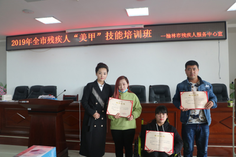 2019年10月24日,全市残疾人美甲技能培训班在榆林市残疾人服务中心举办,来自全市30名残疾人参加了本次培训。通过8天的理论学习及实际操作,学员们掌握了美甲工具使用、了解指甲结构、色彩搭配构图、彩绘、贴甲片等操作手法。结业典礼上,授课老师杜艳玲老师对学员结业考试作品进行现场考核、点评,为本次培训班的3名优秀学员颁发了荣誉证书。