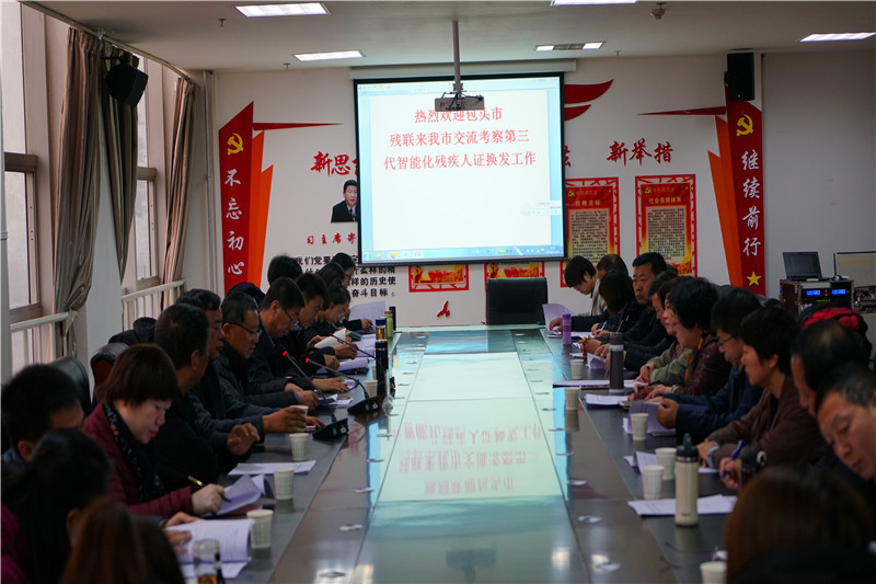 11月27日,包头市残联系统在魏建龙理事长的带领下有市公交集团运营部部长邹银丰、组联部主任唐春蓉、维权部主任刘慧娥、各县区(旗)理事长等一行22人,来我市考察第三代智能化残人证换发工作。