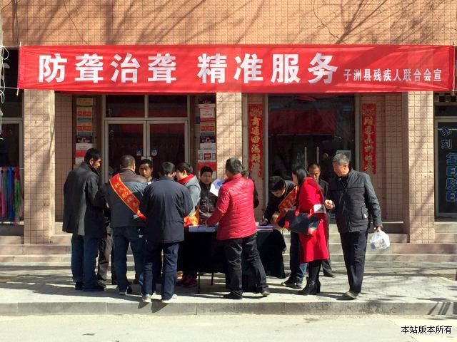 吴堡、清涧、子洲县残联也积极组织残联干部和残疾人志愿者们在街道上拉好横幅,摆好宣传、咨询台,向市民一一分发印有科学用耳、贫困聋儿救助等内容的宣传资料,认真为市民们细心讲解如何保护听力、怎样养成健康用耳习惯等基本常识。同时大力宣传防控出生缺陷、发育障碍、疾病及伤害致听力残疾工作的重要性与必要性和实施残疾人精准康复服务的重大意义,受到了残疾朋友的高度赞扬。当天活动,共接受群众咨询500余人次,发放各类宣传资料3000余份。
