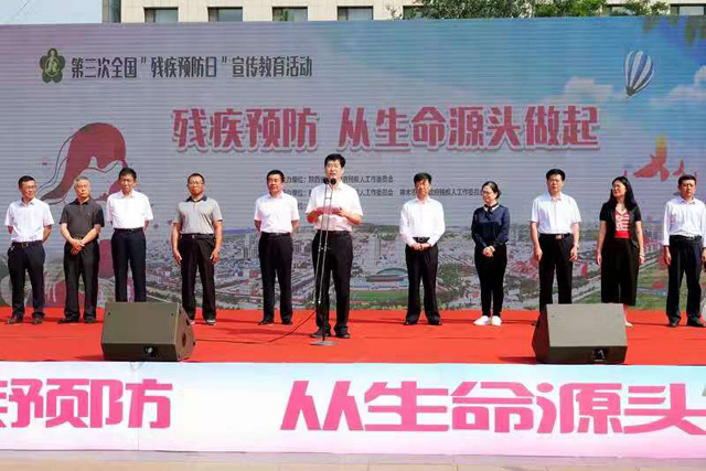 8月25日上午,由省政府残工委主办,榆林市政府残工委、神木市政府残工委承办的陕西省第三次全国“残疾预防日”宣传教育活动在神木市人民广场举行,本次活动的主题为“残疾预防,从生命源头做起”。省残联党组成员、副理事长兰孟偃宣布陕西省第三次全国“残疾预防日”宣传教育活动正式启动。神木市代表“全国残疾预防综合试验区重点干预项目” 试点区(县)发言。