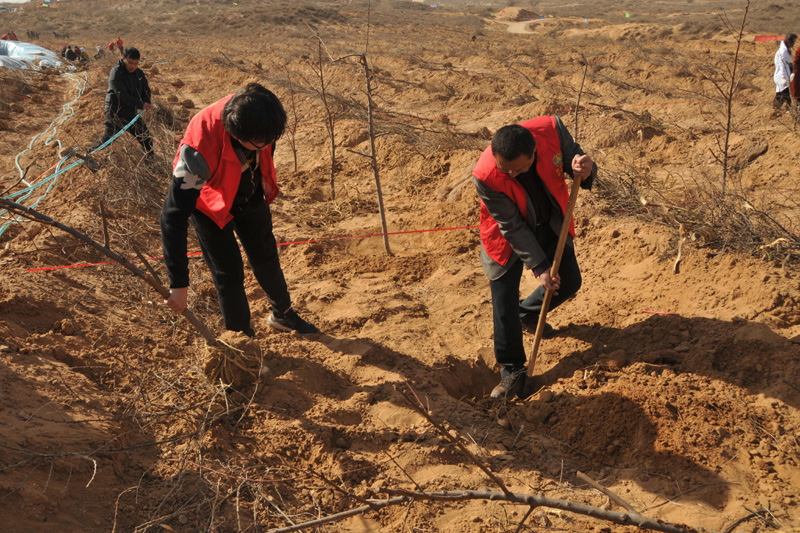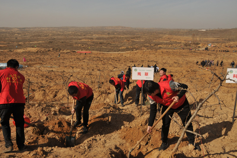 ——榆林市残联全体干部职工义务植树忙