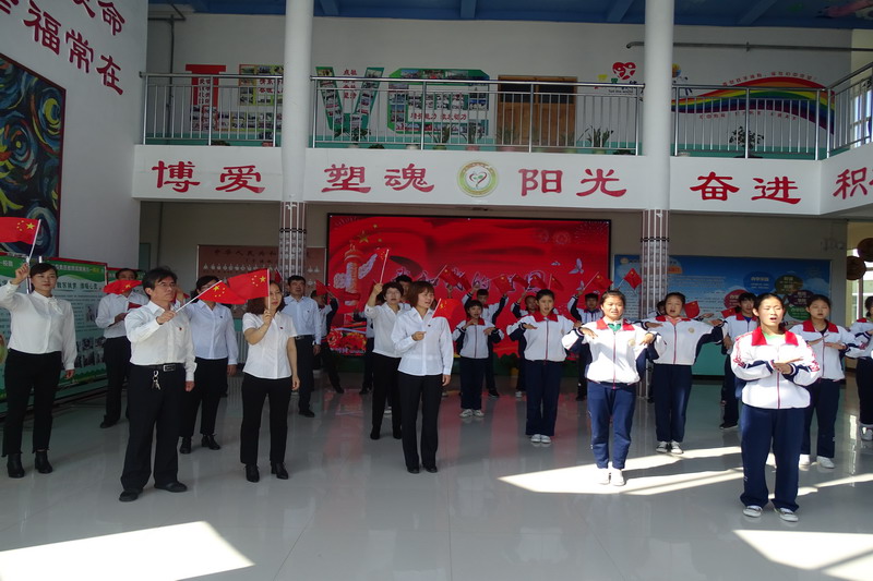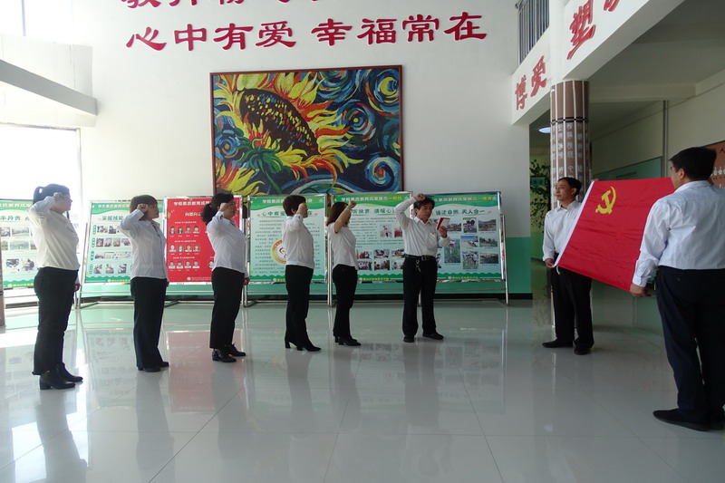 残联全体党员干部和残疾孩子们一起举行了隆重的升国旗仪式。之后大家一起唱响《我和我的祖国》,孩子们热情洋溢,用手语表达出了对祖国母亲的热爱。最后,区残联全体党员,面对党旗,重温了入党誓词,鲜红的党旗提醒大家时刻牢记自己的使命,做到恪尽职守。