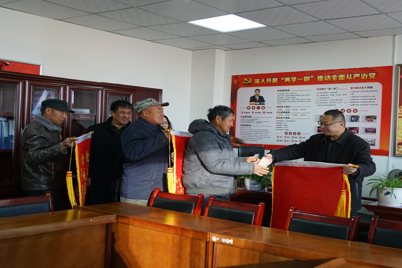 1月27日,家住横山区白界乡的陈金堆、齐伊丽、王莲芹三位老人,大清早将三面锦旗和家里孩子的感谢信送到市残联理事长张爱国手中,一表感激之情。