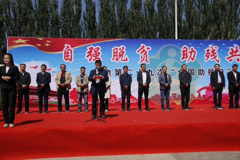 县残联党组书记、理事长单强作活动情况介绍,此次活动由靖边县人民政府残疾人工作委员会主办,靖边县残疾人联合会承办,靖边县特殊教育学校、靖边县康复中心、 靖边县铭善志愿者协会、众康盲人按摩院、盛鼎文化传媒有限公司协助举办。共发放各类残疾人辅助器具834件,总价值72.68万元,各类康复项目资助以及无障碍改造,爱心蓄水窖等项目共计总价值320.68万元。