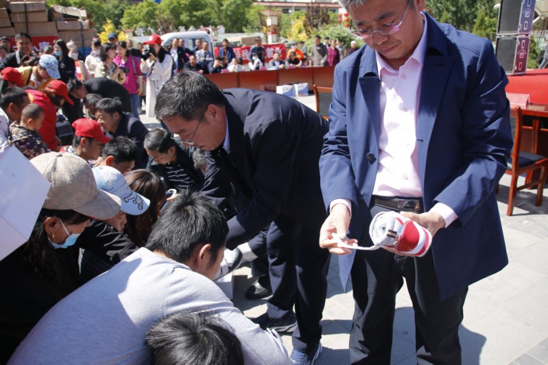 活动现场,我县部分乡镇代表上台领取了各镇的残疾人辅助器具。高升、高正刚等人来到台下分别为前来领取矫形鞋的残疾儿童穿上矫形鞋,依次发放了康复体育训练器材、普通轮椅、护理床以及电动轮椅等辅具。