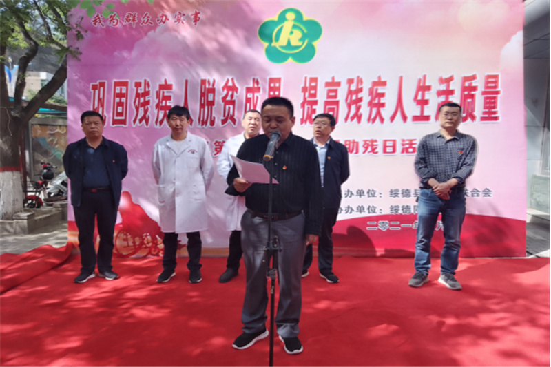 刘伟峰表示:今天县残联联合绥德同心医院共同在这里隆重举行第三十一次全国助残日活动,对于深入贯彻习近平新时代中国特色社会主义思想,深入落实党史学习教育“我为群众办实事”相关要求,深入实施《残疾人保障法》,弘扬社会主义核心价值观,推进巩固拓展残疾人脱贫攻坚成果同乡村振兴衔接,推动“十四五”残疾人事业高质量发展,具有重要意义。通过此次活动,希望广大残疾人朋友能在困境中迸发生命光彩,努力创造无愧于时代的精彩人生。呼吁全社会携起手来,发扬扶残助残的光荣传统,为残疾人事业奉献爱心,为残疾人事业奉献爱心,共同帮助残疾人稳定脱贫增收!
