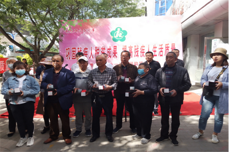 现场共为10名残疾人发放了助听器,为10名残疾人发放助视器,为22名残疾儿童发放助学金共计17600元、为1名残疾人发放自主创业补助资金共计5000元。活动现场发放宣传水杯150个,发放宣传资料2500册,向群众普及残疾人预防、就业政策、残疾证办理及有关残疾人的法律法规等知识。