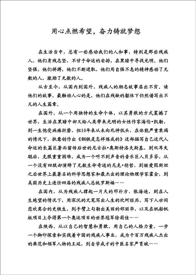 《中外残疾人励志故事选》语音版——序及奥斯特洛夫斯基 发布时间:2017-12-18 09:27:00 来源:办公室 阅读:7055 【 大 中 小 】 扫一扫在手机打开当前页 上一篇: 榆林市人民政府残疾人工作委员会关于 对中、省、市、县(区)所属单位2019年度 按比例安排残疾人就业工作进行认定的通知 下一篇:没有了!