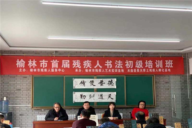 出席本次开班仪式的有榆林市残疾人服务中心副主任曹溪、米脂县残联理事长贺爱民、米脂县昊天厚土残疾人孵化基地主席张雷武,榆林市书法协会高埃飛老师。课堂上高老师给学员们讲授了中国书法的知识和技巧,并与残疾人畅聊书法艺术,鼓励残疾人坚持学习,展示才能,提升文化修养。