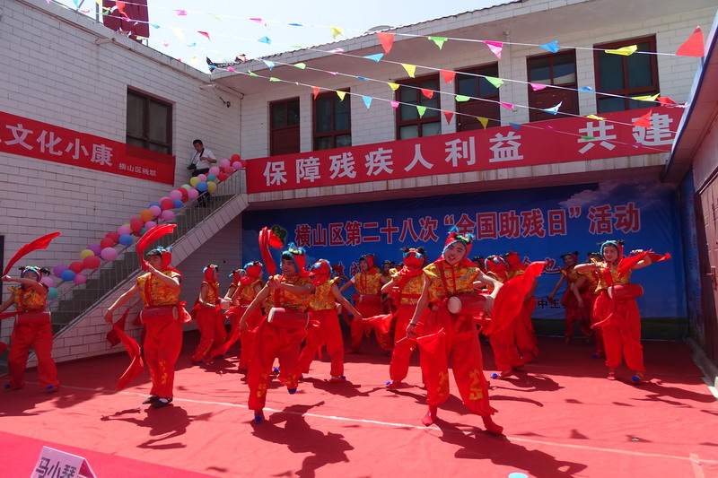 福利公司的残疾职工和横山区特殊教育学校的孩子们在活动当天献上了十几个精彩的节目,小品《李宝顺吃救济》反映了残疾人要自强自立,不能只靠政府。聋哑孩子们《无言无语》舞蹈道出了他们的心声,虽然听不见,但仍然可以通过舞蹈来展示律动之美,精彩的节目赢得了台下观众阵阵掌声、喝彩声。