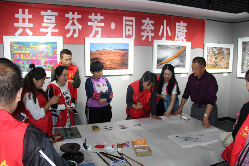 活动中,残疾人文化爱好者参观了艺术家赵勇的摄影作品,期间赵勇讲解了自己的摄影理念,他自强自立的精神风貌感染了在场的所有人,让更多的残疾人文艺爱好更有信心的参与进来。特邀书法协会的杨座山老师和高峰老师耐心地为现场的残疾人指导、讲解书法和绘画技巧,并且为现场残疾人书法爱好者赠送墨宝数幅,通过此次活动能鼓励全社会关心支持残疾人广泛参与、乐于参与文化活动,在参与中受益。同时,引导全社会理解、关心、帮助残疾人,营造有利于残疾人事业发展的良好氛围。
